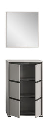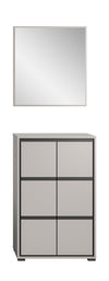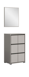 Experience the minimalistic yet practical design of The Rootz Wardrobe, ideal for modern interiors. This wardrobe system includes two pieces in gray finish. It comprises a shoe chest and wall mirror in a sleek black set, offering a timeless look to your entryway.