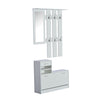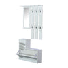 With Rootz 3 Piece Wardrobe Set find the answer to your questions! Where do I store my shoes? Where do I hang my coats? What will my hairstyle look like? The 3 in 1 set consists of a shoe cabinet, a wardrobe panel and a mirror. The shoe cabinet has 3 flaps, each flap has a partition. So you can store your shoes on top of each other without them getting dirty. The cloakroom panel has 6 hooks on which to hang your coats or bags. The mirror has a good size so you always have everything in view. Care has been taken to ensure that the materials used are easy to maintain. Get the 3-piece wardrobe set!