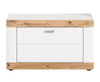 This Laredo bench wardrobe features a white matt deep-drawn body with a white melamine ABS Nox Oak Nb front, including 1 flap and 1 shelf. Its modern design is timeless and easy to maintain, perfect for organizing your entrance area efficiently.