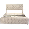 This elegant beige bed combines style and functionality, featuring a height-adjustable headboard and four spacious drawers for extra storage.