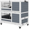 This stunning rabbit stable offers a spacious, two-floor environment perfect for your rabbits and other small animals. Designed with convenience in mind, it features 360° swivel wheels for easy mobility, safety doors, and removable dropp trays for optimal hygiene. With its sturdy, high-quality spruce wood construction and elegant gray-white design, your pets will enjoy both comfort and style.