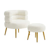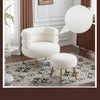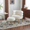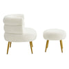 This white recliner with matching footstool combines comfort and style seamlessly. The generous seating area and thick seat cushion provide optimal support and comfort. The height-adjustable footrests ensure stability on any floor while protecting it. With a robust construction and elegant design, it fits perfectly into any living space.