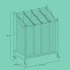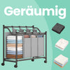 The Rootz laundry car is designed for durability and convenience. Made from powder-coated metal and 600d polyester, it features four removable bags, allowing for easy sorting of clothes. With heavy-duty wheels, it glides smoothly from room to room, making laundry day a breeze. Organize your dirty clothes efficiently while ensuring that your fine fabrics stay separate from heavier items.