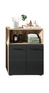 Bring sophistication and functionality to your bathroom with The Rootz 3-piece bathroom combination. Featuring a Black and Brown imitation, this stylish set includes a wide standing cabinet, a mirror cabinet, and a vanity unit. Its MDF fronts with groove milling ensure durability and aesthetic appeal, making it the perfect addition to modern bathrooms. Easy-to-clean surfaces and easy assembly make it a practical choice for any home.