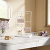 Elegantly designed, the Rootz Jewelry Stand in cloud white finish is the perfect solution for organizing your jewelry collection. This stand is crafted from durable steel, MDF, and velvet materials, ensuring longevity and style.