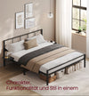 The Rootz Double Bed Frame 160 x 200 cm with Headboard in Stylish Black Finish