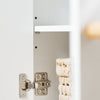 The shelf behind the doors is adjustable to three different heights, providing flexibility to accommodate items of various sizes, or it can be removed entirely for larger items.