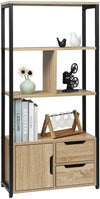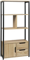 Elegant and Practical DesignThis bookcase combines a modern industrial look with practical design elements. The mix of open shelving and closed drawers allows for both display and discreet storage of various items.