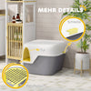 Hinged Top Lid: For easy cleaning, along with a litter box scoop.