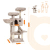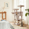 Multiple Play AreasEquipped with 2 elevated platforms, a cozy cave, and a sturdy hammock, this post offers various options for play and rest. Whether it's a game of hide-and-seek or a peaceful nap, your cat will find its perfect spot.