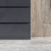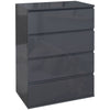The Rootz Chest of Drawers offers a modern gray paint finish and four spacious drawers, perfect for clothing and accessories. Its handless design ensures easy access while the robust chipboard construction guarantees durability. The elegant high-gloss finish and versatile color allow it to seamlessly fit into any décor, making it a practical addition to your bedroom or living space.