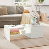 The Rootz adjustable coffee table in white is a modern, multifunctional centerpiece for your living room. Featuring a movable tabletop, it serves as both a stable workspace and a dining surface. Sturdy metal rails ensure smooth operation while a hidden compartment and open shelf provide ample storage. Chipboard construction with melamine surface makes it durable, easy to clean, and suitable for any contemporary home setting.