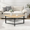 This stunning Modern Coffee Table features an elegant retro renal shape with a large tabletop in a warm Brown look. Equipped with a dark-colored glass storage department and a black metal frame, it offers aesthetic contrast and functionality. Perfect for displaying snacks, drinks, or décor, it enhances any living space with its chic and practical design.