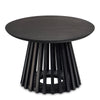 Introducing the Rootz round coffee table, a perfect blend of modern design and timeless elegance. This table features an open grid frame supporting a solid mango wood top, painted black and coated with clear varnish for added protection. The visible, natural wood grain adds a unique touch to the entire table, making it a standout piece in any living space.