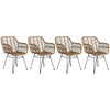 Enhance your kitchen or dining room with the Rootz Dining Chairs Set consisting of 4 characterful chairs. The Poly rattan seat shell adds a touch of natural beauty to your interior. The curved back, armrests, and sturdy chair frame ensure long-lasting comfort and durability.