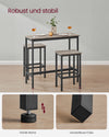 Durable and SturdyConstructed from high-quality chipboard and reinforced with steel, this bar table set is built to last. It can handle up to 100 kg per stool, ensuring stability and support.