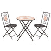 Bring comfort to your outdoor space with this three-piece set from Rootz. Perfect for gardens, balconies, terraces, and other outdoor areas, it consists of a round table with a ceramic mosaic top and two chairs - both with mosaic patterns. The set consists of a powder-coated metal frame that forms a solid and robust core structure.