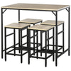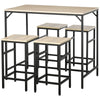 With this set from Rootz, you can easily arrange the seating of guests and the placement of the food. The two-tone construction of rustic wood and dark metal sets a clear style in a modern environment. The armless stools offer freedom of movement for an unrestricted sitting experience and can be placed under the desk to save space.Space-Saving Design: The 5-piece set includes a dining table and 4 stools that can be stored under the table, making it ideal for small spaces.Robust Construction: The steel frame ensures a stable and durable structure, while the wooden tabletop is easy to clean, providing both functionality and style.Enhanced Stability: Side bars and a crossbar increase the stability of the table, and the footrest offers pleasant relief for your feet.Adjustable Protection Levers: The attached adjustable protection levers help keep the table upright, ensuring a safe and secure dining experience.- Color: Black+Oak
