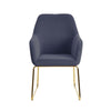 Introducing the Rootz Dining Chair, a perfect blend of style and comfort for any modern dining space. Upholstered in luxurious blue-gray velvet and supported by striking gold metal legs, this chair offers both elegance and durability.