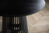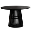 Introducing the Rootz Dining Room Table, a stunning blend of modern design and timeless functionality. Crafted from solid mango wood and finished in sleek black, this table is designed to elevate any dining space.