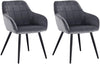 The Rootz Set of 2 Dining Chairs with Armrests: Velvet Seat, Dark Gray Metal Legs