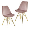 Introducing the Rootz Set of 2 Dining Room Chairs, a perfect blend of Scandinavian elegance and modern comfort. These chairs feature a plush velvet seat in a striking pink hue, supported by sleek, gold lacquered iron legs, offering both style and stability.