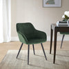 The Rootz Set of 2 Dining Chairs with Armrests: Velvet Seat, Dark Green Metal Legs