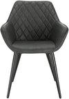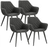 The Rootz Set of 4 Upholstered Dining Chairs with Armrests in Faux Leather and Metal, Anthracite