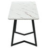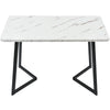 This elegant dining table brings luxurious elegance to your home with a marble-look MDF tabletop and sturdy black metal legs. Ideal for dining rooms, living rooms, or offices, this table offers style and durability.