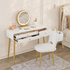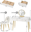 The Rootz Adjustable Dressing Table with LED Mirror and Velvet Stool - Cream + Gold