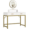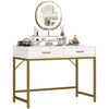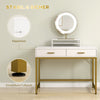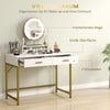 The Rootz Cosmetic Table with 360° Mirror, LED Lighting, 2 Drawers, White/Gold