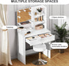 - Material: Dressing table - wood material + glass; Stool - faux leather + metal