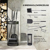 Enhance the elegance of your fireplace with the Rootz Fireplace Cutlery Set. This five-piece set includes a broom, shovel, tongs, poker, and metal basket, suitable for indoor and outdoor use.