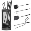 Five-piece fireplace accessory set: Includes broom, shovel, tongs, poker, and basket for complete fireplace maintenance.Metal construction with powder coating: Ensures durability and longevity.