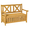 Easy storage done the stylish way. This outdoor bench from Rootz gives you a place to sit and a handy place to keep your outdoor pieces all together. Made from solid and weather-resistant fir wood, it's crafted into a two-seater size so you can relax with a friend. The high back and armrests support your body, the cut-out panels keep you cool. Underneath the seat is the storage area, which also is surrounded with cut-out panels to prevent moisture build-up inside. It's finished with four stump feet. A must for the sunny seasons ahead.