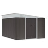 Easily add storage space to your property with this garden storage shed from Rootz. This metal tool outer house storage shed is made from corrugated metal, so it's tough and sturdy. Double sliding doors for easy entry, with two ventilation holes to keep the inside aerated. This Rootz tool shed is for the seasons ahead. Floor foundation is not included.