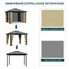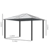 Immerse yourself in pure outdoor luxury with our exclusive hardtop gazebo from Rootz. The translucent polycarbonate roof creates a comfortable, inviting atmosphere in which to relax. At the same time, the pavilion with its double-layer curtains offers reliable protection against adverse weather conditions and annoying insects. Thanks to the use of robust and weather-resistant materials, this aluminum gazebo is a masterpiece of durability and reliability.Durable Construction: The high-quality, powder-coated aluminum frame ensures long-lasting durability and resistance to weather conditions, making it a reliable choice for any outdoor setting.Weather Protection: The translucent, waterproof pavilion roof made of UV-resistant polycarbonate provides excellent protection against sun and rain, ensuring you can enjoy your outdoor space in any weather.Versatile Side Walls: The side walls can be closed variably and consist of two parts: opaque polyester (outside) and a nylon fly net (inside), offering both privacy and protection from insects.Stable and Secure: Pegs for anchoring in soft ground ensure stability, making this gazebo a secure and steadfast addition to your garden or patio.Included in the Package