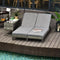 Three-piece set consisting of two sun loungers and a matching side table. - The sun lounger has a sturdy steel frame