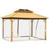 This two tier gazebo is your best choice for any outdoor activities, family gatherings and gatherings. Our wood grain gazebo will enhance your garden, patio or other outdoor space, adding an element of comfort and elegance that is sure to impress your guests. It includes a nylon curtain which is a perfect choice when you want to beat the summer heat and enjoy the outdoors