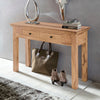 A charming and versatile addition to your home. With its unique grain and warm color tone, features two drawers for convenient storage. The solid acacia wood construction ensures durability, while the four wooden legs provide stability. Embrace its rustic elegance and adaptability as a dressing table, desk, or secretary. Please note that due to its handmade nature, slight color variations or bumps may occur, adding to its individuality.