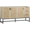 This storage cabinet from Rootz will help you keep all your important items organized. Its industrial look with a trendy chevron pattern and the black metal frame bring a stylish industrial chic into your home. At the same time, the cupboards and drawers offer plenty of storage space for your everyday accessories and objects. Customize your home with adjustable shelves that adapt to your needs.