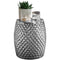 An exceptional silver-colored centerpiece with an enchanting oriental design, hammered structures, and ample storage space for remote controls and magazines. Handcrafted from high-quality aluminum, its unique dents and rounded shape ensure both elegance and stability. Elevate your living space with this one-of-a-kind masterpiece.