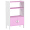 Stylish Design: Pink finish with natural wood accents enhances room decor.