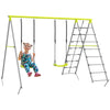 SAFE AND STABLE: Made with metal pipes, its A-shaped structure ensures balance and stability. This garden swing set won't shake or wobble as kids play on it. The ground stakes keep it securely on the floor.