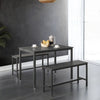 This sleek and modern dining set includes a table and two benches, crafted from high-quality chipboard and steel. Finished in an black , it offers both durability and a contemporary flair for your dining area. The spacious table and benches are designed to comfortably seat your family and guests, with a substantial static resilience to support your dining needs. Easy to assemble with clear instructions included.