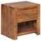 A perfect storage solution for your bedroom with its rustic country house design, unique sheesham wood grain, and ample storage space provided by a drawer and open compartment, all while showcasing its handcrafted and one-of-a-kind charm.