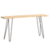 An expressive office table with tree edge details, a natural wood grain top, and sturdy hairpin legs.