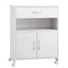 The Rootz mobile printer stand combines style and functionality, featuring an upper drawer, adjustable shelf, and two-door cabinet. Designed from robust chipboard, it offers ample storage while ensuring easy movement with four rollers. Perfect for offices, libraries, and more, this stand is a convenient solution for managing your work area efficiently.