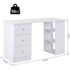 This beautiful white desk offers plenty of storage with 3 drawers, 2 shelves, and a spacious work surface for optimal conditions.