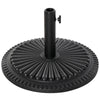 This Rootz umbrella base offers a decorative, high end touch to your outdoor living space while also performing a necessary task of holding your umbrella in place. With an attractive decorative sunburst pattern and black finish this piece adds charm and elegance to any patio. Made from poly resin, this piece is rust-resistant and made to last for years. Set up your outdoor patio today with a beautiful umbrella and keep it secure with an Rootz umbrella base.